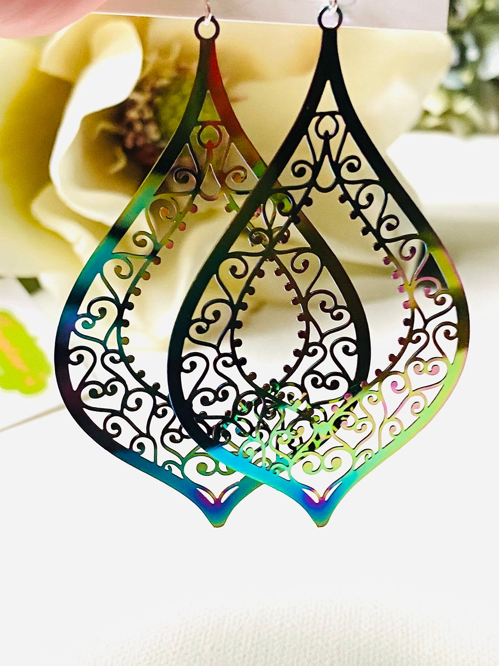Large lightweight Tainbow Metal Teardrop Earrings